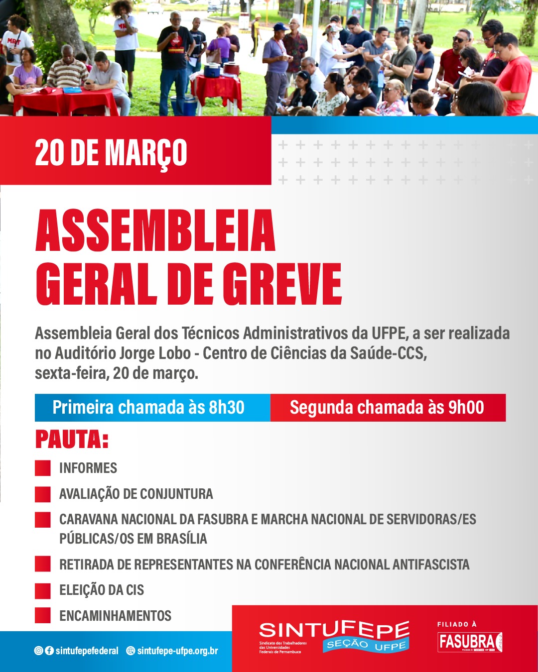 Sexta-feira (20) os técnicos e técnicas administrativas da UFPE terão mais um importante momento de discussão sobre a organização da Greve Nacional.