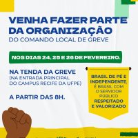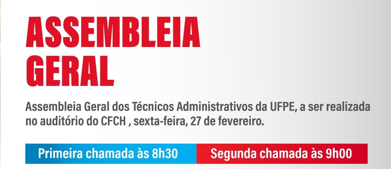 Aqui na UFPE, a categoria se reunirá no auditório do CFCH, com primeira chamada às 8h30 e com segunda chamada às 9h.