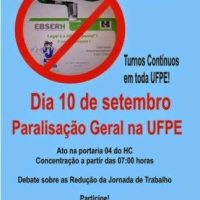 Dia 10 de setembro a UFPE para parar