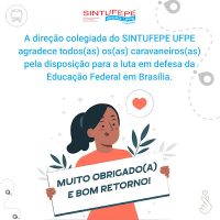 Agradecimento do Sintufepe UFPE aos caravaneiros que foram à Brasília lutar pela categoria