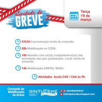Segue a programação da terça-feira (19) da nossa greve, encaminhada pelo Comando de Greve da UFPE