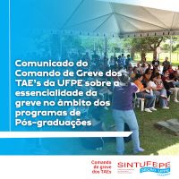 Comunicado do Comando de Greve dos TAE’s da UFPE sobre a essencialidade da greve no âmbito dos programas de Pós-graduações