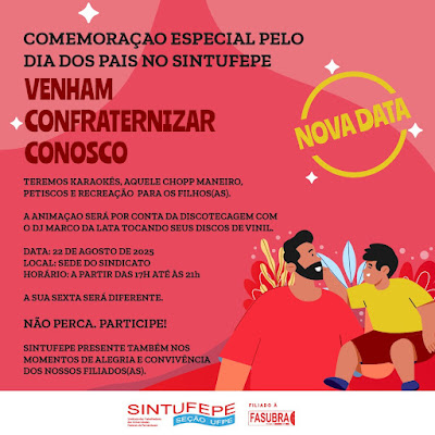 Venha confraternizar o Dia dos Pais no SINTUFEPE UFPE no dia 22 de agosto, sexta-feira